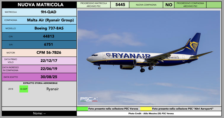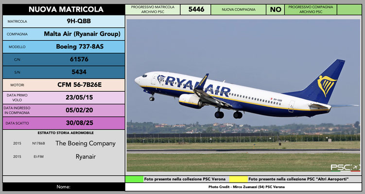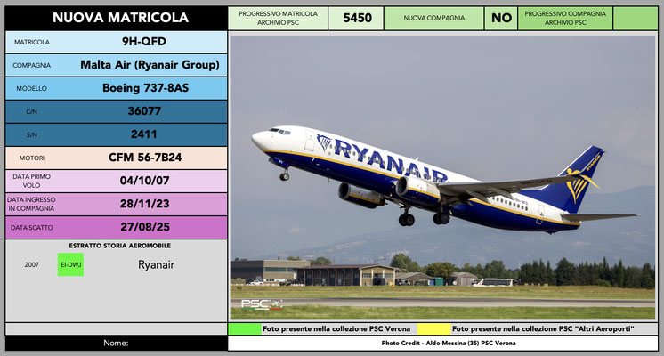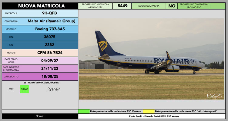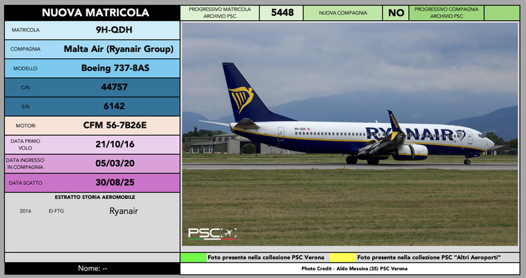 Oggi ci limitiamo a un monocolore Ryanair con sei esemplari della sussidiaria Malta Air. D'altra parte, con oltre 600 aerei in flotta...si fa presto a beccarne qualcuno di nuovo.