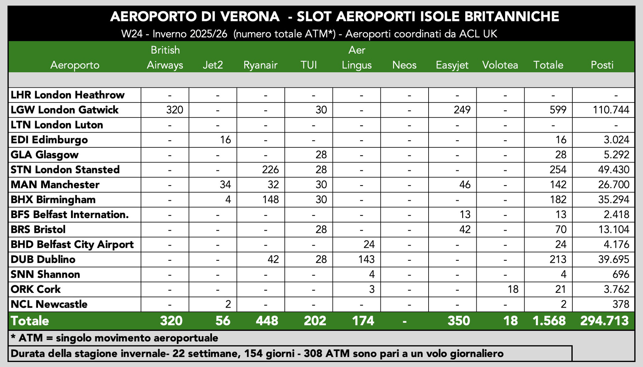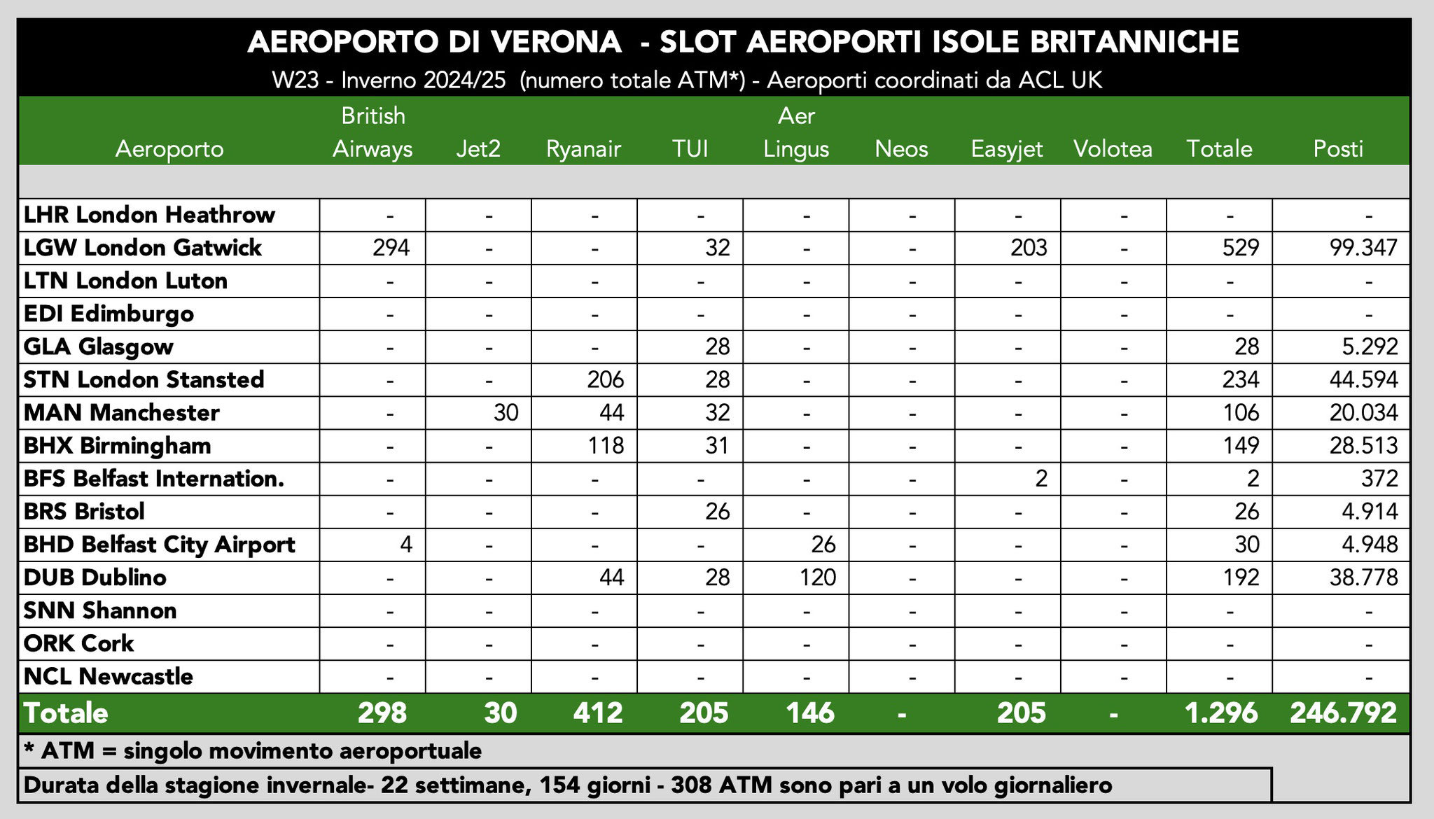 I dati pubblicati da ACL sono per noi interessanti soprattutto per quanto riguarda il numeroso gruppo di aeroporti gestiti nel Regno Unito e nella Repubblica d'Irlanda. Come noto il traffico con le Isole Britanniche è il principale contributore del mercato internazionale dell'Aeroporto di Verona e rappresenta oltre il 16% del totale dei passeggeri transitati.