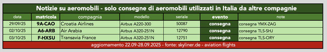 Poche le novità a livello nazionale, ma da segnalare la consegna del primo A220 a Croatia Airlines.