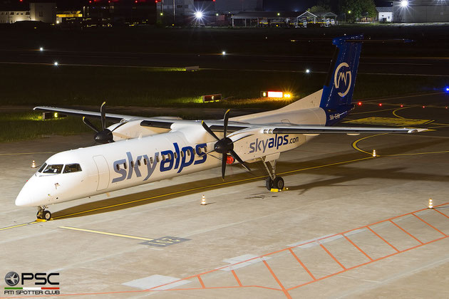 La flotta di SkyAlps è incentrata sugli efficienti turboelica De Havilland DHC-8-400 (Dash 8 Q400). Questi velivoli sono noti per il loro basso impatto ambientale e sonoro, con un risparmio di emissioni fino al 50% rispetto ai jet regionali, una scelta in linea con l'attenzione della compagnia verso la sostenibilità. Nel 2024, l'azienda ha espanso la flotta a otto aeromobili operativi che saliranno a quattordici nei prossimi mesi.