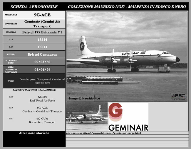 Continua il nostro viaggio vintage nella Malpensa in bianco e nero, pubblicando oggi due fotografie di un Bristol Britannia appartenente alla compagnia cargo ghanese Gemini Air Transport, anche conosciuta come Geminair.