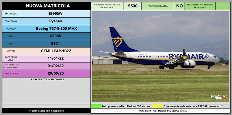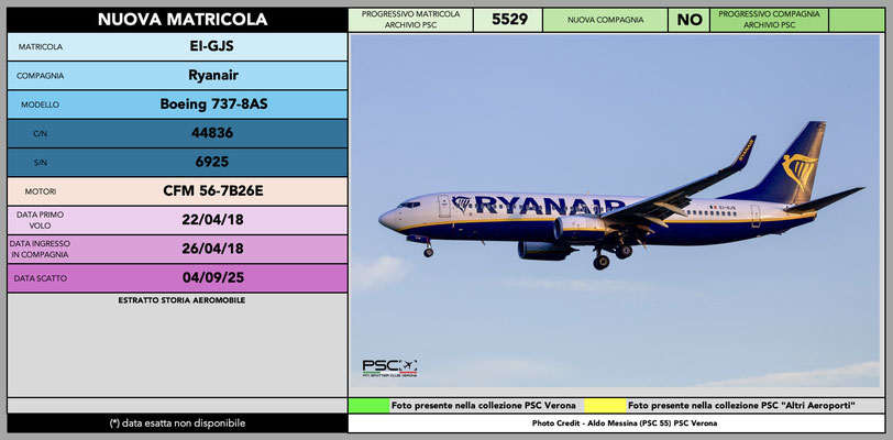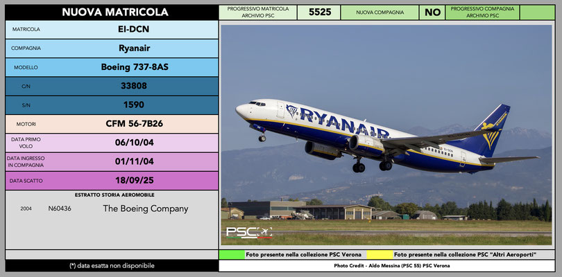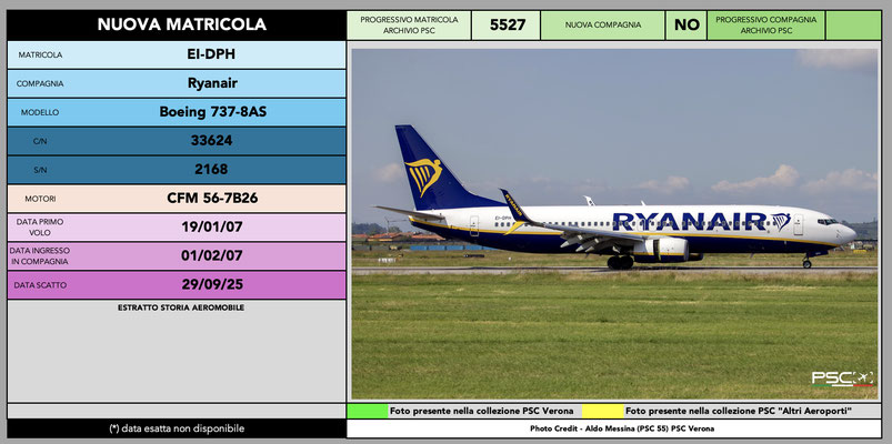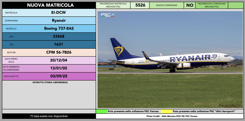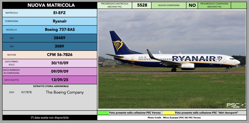 Anche per il mese di settembre arriva la classica infornata di nuove matricole della compagnia irlandese Ryanair. La sua immensa flotta permette una copiosa turnazione e, pur avendo raggiunto le