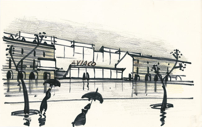 Il progetto della sede dell'Aviaco a Madrid (concorso del 1975), rientra nella fase successiva della carriera di De la Sota, in cui egli indagava la leggerezza e l'essenzialità dei grandi vuoti interni in sintonia con il minimalismo delle soluzioni tecniche.