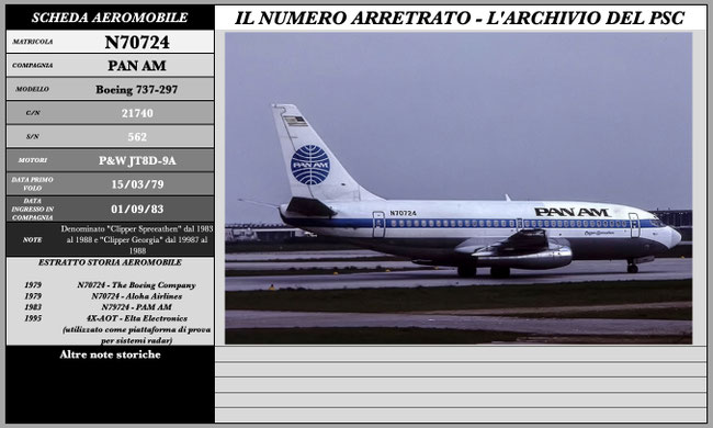 Una delle fotografie più insolite e affascinanti della nostra collezione di foto scattate all’Aeroporto di Verona, “rubata al volo” in condizioni di luce non ottimali a metà anni ‘80, è quella del 737-200 N70724 della PAN AM, iconica linea aerea statunitense nota soprattutto per i suoi collegamenti a medio e lungo raggio dagli Stati Uniti.